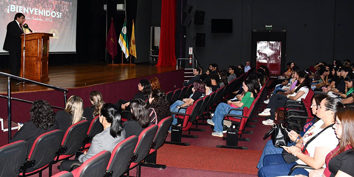 La bienvenida a los nuevos ingresantes de las diferentes carreras estuvo a cargo de la presidente del Centro de Estudiantes de la ESBA-UNE, Univ. Lourdes Anahí Gamarra,vy la vicepresidente, Univ. Glyse Fritz Ayala.
