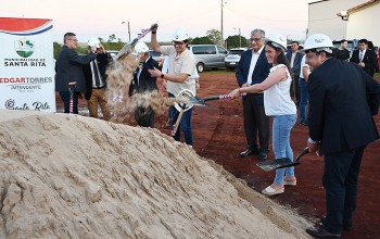 Autoridades del municipio de Santa Rita y de la Universidad Nacional del Este (UNE) realizaron la palada inicial para la construcción de obras en la Filial Santa Rita de la UNE.
