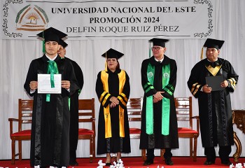 La ceremonia de graduación estuvo presidida por el rector de la UNE, Prof. Ing. Agr. José Sánchez Martínez, el decano de la FCE-UNE, Prof. Dr. Néstor Dario Almada, la decana de la FAFI-UNE, Prof. Dra. Paola Sánchez de Vergara, el secretario General de la UNE, Prof. Abg. Pedro Mariano Amarilla.