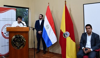 Por la FDCS-UNE, estuvieron presentes el Prof Abg. Rafael Mancuello Egusquiza, decano; el Prof. Dr. Arsenio Arguello, director académico y miembros del Consejo Directivo, el universitario Roque Morel, presidente del centro de estudiantes acompañado de alumnos de la Sede Central CDE y de la filila Mallorquín.