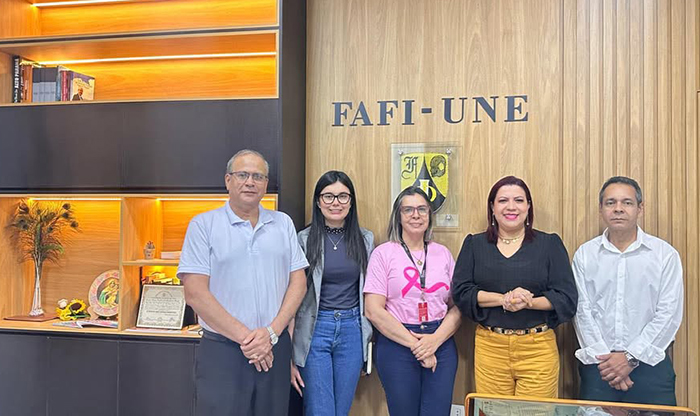 Participaron de la reunión la Prof. Dra. Paola Sánchez de Vergara, Decana; el Prof. Abog. Pablo Colmán, Vicedecano; y el Prof. Dr. Roque Alcides Giménez, Director de Práctica y Pasantía; junto con la Abog. Silvana Méndez, Secretaria Departamental de la Mujer de Alto Paraná, y la Abog. India Nara Romero, Secretaria General de la Gobernación. El encuentro se realizó el viernes 24 de octubre con el propósito de fortalecer la cooperación interinstitucional en favor del desarrollo humano y social del departamento.