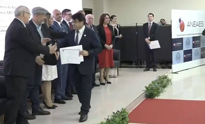 Acompañó al Rector de la UNE en la recepción de los certificados de acreditación, el Ing. Agr. Oscar Mario Espinoza, Decano de la Facultad de Ingeniería Agronómica-UNE.