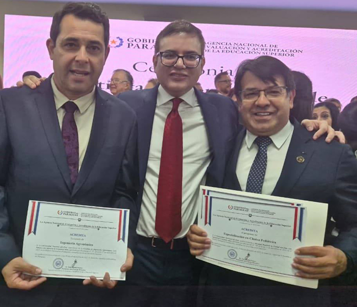 La UNE logró la acreditación de la carrera de Ingeniería Agronómica, sede Itakyry, en el modelo nacional; el programa de Especialización en Clínica Pediátrica; y la carrera de Ingeniería Agronómica de la sede central, en el modelo Arcu Sur.