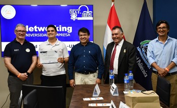 Estuvieron presentes el rector de la UNE, Ing. José Sánchez Martínez, acompañado por el decano y vicedecano de la FP-UNE, Ing. Walter Isabelino Duarte Maldonado y Dr. Carlos Enrique Montiel. Asi tambien, presencia de la decana de la Facultad de Filosofia-UNE, Dra. Paola Sánchez de Vergara, y el decano de la Facultad de Derecho y Ciencias Sociales Sociales-UNE, Abg. Rafael Mancuello Egusquiza.