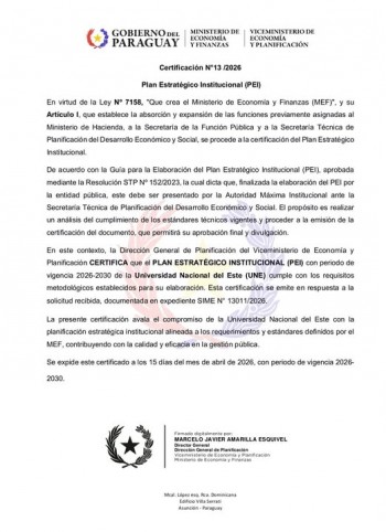 La Universidad Nacional del Este (UNE) es una de las sedes para concursantes seleccionados del Programa Becas Gobierno del Paraguay, Convocatoria 2026, puedan firmar el Acuerdo de Compromiso desde el martes 21 hasta el viernes 24 de abril. Este requisito es indispensable para acceder a los beneficios de la ayuda económica.