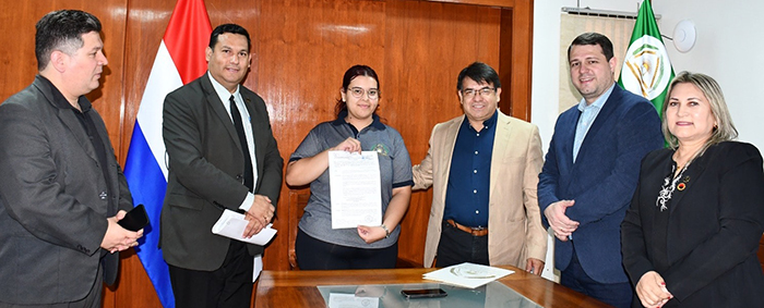 El Ing. Agr. José Sánchez y el Mag. Carlos Mercado, rector y vicerrector, respectivamente, dieron la noticia en el Gabinete del Rectorado y entregaron la referida resolución a la joven trabajadora, quien con lágrimas en los ojos, recibió con alegría y felicidad la información que tanto anhelaba.