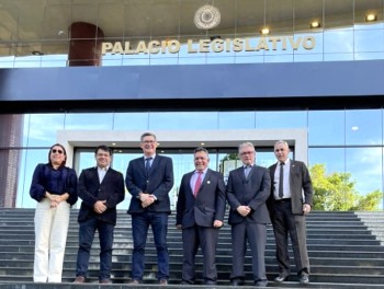 La Comitiva de la UNE, además del Rector, estuvo integrada por los Decanos, Dr. Néstor Almada, Paola Sánchez de Vergara, Ing. Walter Duarte y Abg. Rafael Mancuello. Así mismo, acompañó la Delegación, el Director General de Administración y Finanzas del Rectorado-UNE, Mag. Ariel Unzaín.