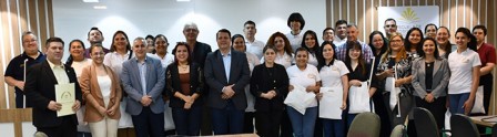 Acompañaron al Vicerrector, la Decana de la Facultad de Filosofía - UNE (FAFI-UNE), Dra. Paola Sánchez de Vergara, y el Director General de Administración y Finanzas del Rectorado-UNE, Mag. Sergio Ariel Unzain.