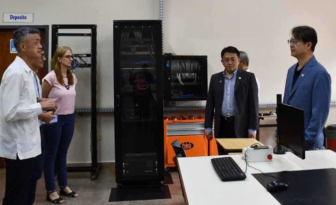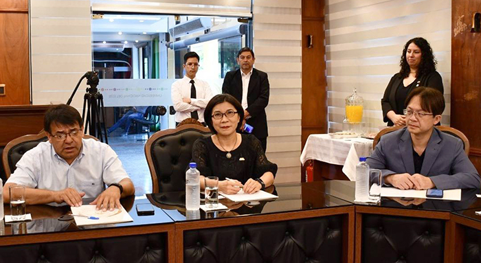 La reunión se realizó en el Paraninfo del Rectorado-UNE, el viernes 16 de enero de 2026. Luego, la delegación realizó un recorrido por los laboratorios de la Facultad Politécnica (FP-UNE), con el acompañamiento del Dr. Enrique Montiel, decano en ejercicio de la FP-UNE.