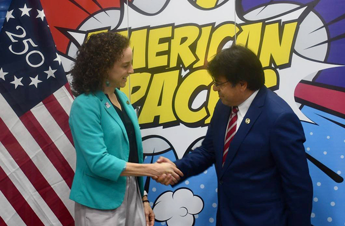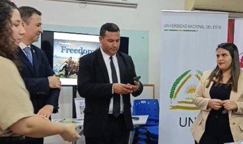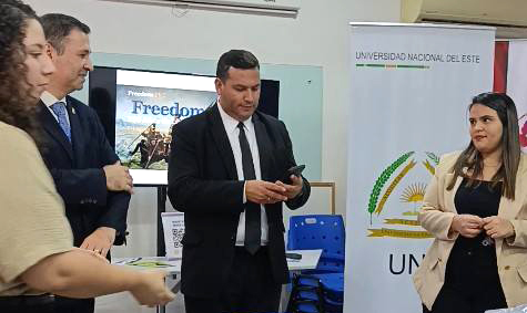 La recepción se realizó en el Espacio Americano de la UNE Margaret Knight American Corner, situado en las instalaciones del Rectorado, Campus Central, en el barrio San Juan de Ciudad del Este.