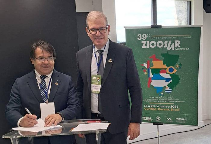 La firma se realizó en la ciudad de Curitiba, estado de Paraná, Brasil, en el marco del 39° Encuentro Internacional de la Red ZICOSUR Universitario. Por la UNICENTRO, estuvo su Rector, Prof. Fabio Hernandes.