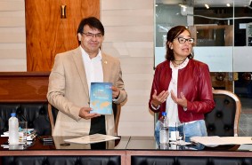 Por la Fundación Araucaria, estuvo presente Adriana Brandt, Coordinadora Técnica del Nuevo Arreglo de Investigación e Innovación (NAPI) de Desarrollo Sostenible en la Región Trinacional, y Noelia Mallorquín, articuladora paraguaya del NAPI, quienes presentaron las líneas de trabajo, oportunidades de cooperación y proyecciones conjuntas con la UNE.
