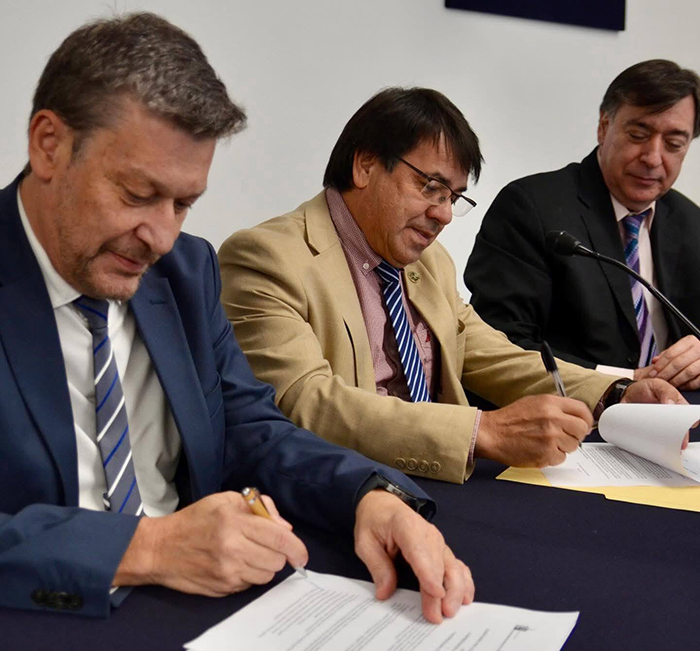 El Rector de la Universidad Nacional del Este (UNE), Prof. Ing. Agr. José Sánchez Martínez, participó de un acto donde se oficializa formalmente su compromiso de trabajo con la La Universidad Nacional de La Pampa (UNLPam), de la República Argentina.