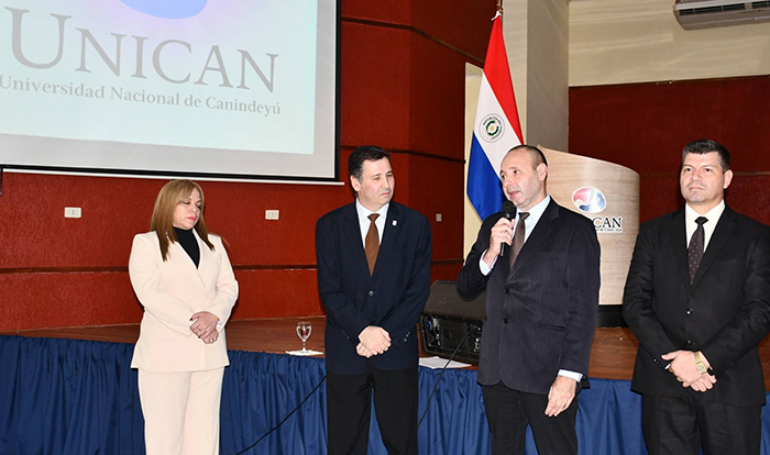 Una delegación de la Universidad Nacional del Este (UNE) integrada por decanos, directores administrativos, directores académicos de grado y posgrado, responsables de investigación y de extensión, miembros de comisiones y de comités vinculados al aseguramiento de la calidad y a los procesos de autoevaluación institucional y de carreras, participó de la Jornada Académica organizada por la Universidad Nacional de Canindeyú (UNICAN). El encuentro se desarrolló en el marco del 16º Aniversario de la referida casa de estudios.
