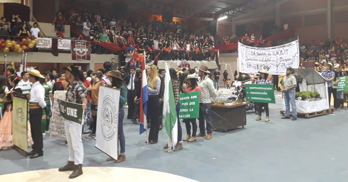 Se dio a apertura oficial al evento con las palabras de ocasión del Director General de Talento Humano del Rectorado Dr. Sergio Reinaldo Lauseker, quién a su vez, alentó a los universitarios a que las competencias se desarrollen con normalidad y en el marco del respeto. Acto seguido, un grupo de estudiantes de la Facultad de Filosofía presentó un número artístico para dar realce a la noche de inauguración. Así también, se procedió al desfile de las alegorías, donde los estudiantes de las unidades académicas participantes, pudieron demostrar, creatividad, empeño y dedicación con las presentaciones.